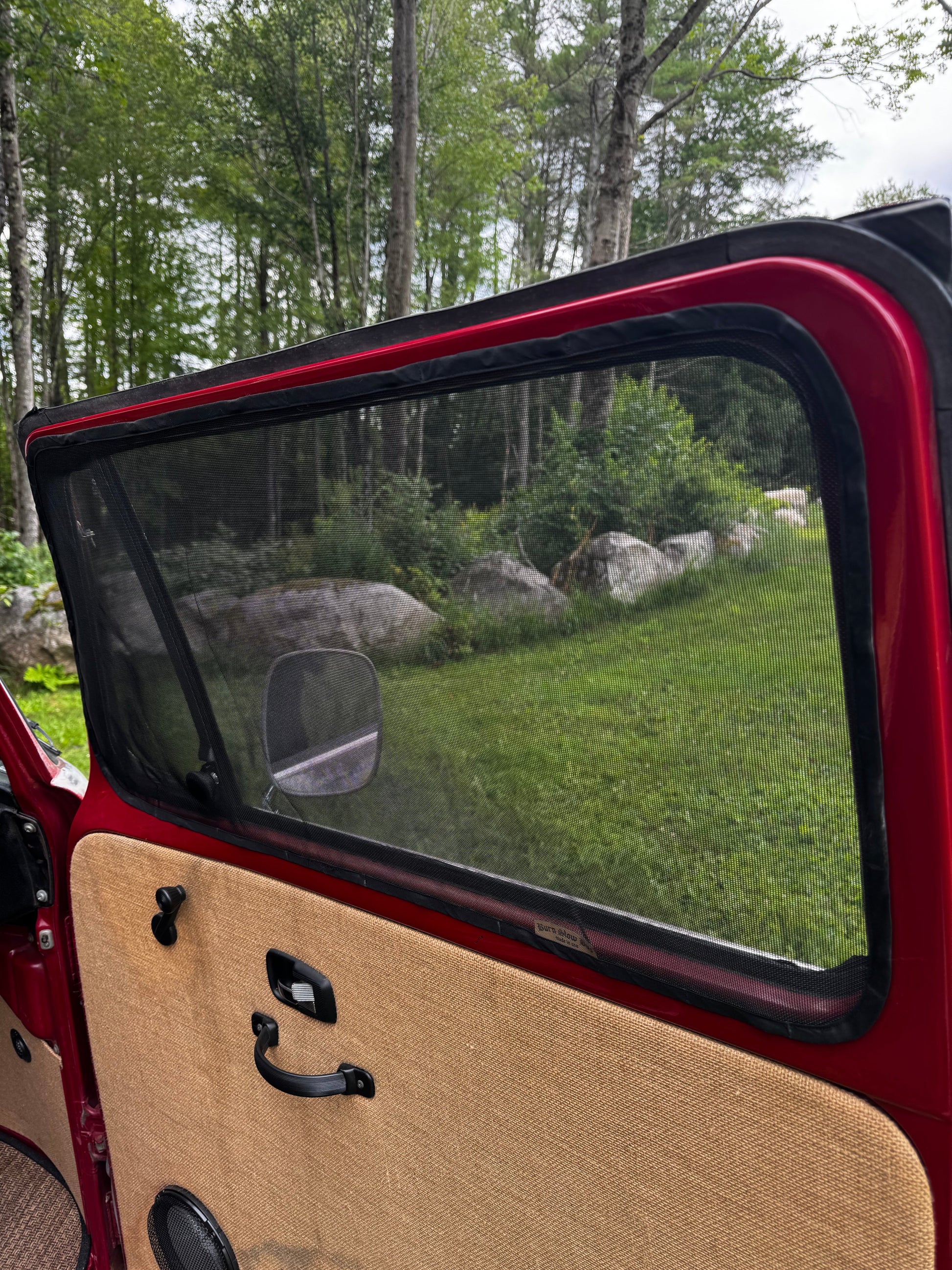 Introducing the new Burn Slow Bus Insect Screens for your Baywindow Bus. Heavy Duty Rare Earth Magnets hold everything in place while making install and removal a breeze! The screens themselves are super heavy duty and will not rip or come apart, even from frequent use.